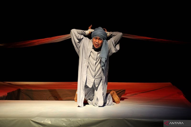 Pelakon Teater Art in Revolt (AiR) mementaskan naskah “Manusia Idaman Tanah” karya E. M. Yogiswara di Taman Budaya Jambi, Jumat (4/3/2022) malam. Teater tersebut bercerita tentang kematian dan spiritualitas. ANTARA ...http://dlvr.it/SL6LSR
